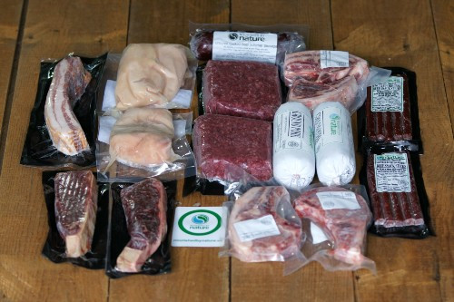 Raised on regeneratively managed land with abundant soil life, our cattle feast on a diverse diet of grass and forbs. No grain ever! They're truly pasture raised and grass fed and finished. You can expect juicy cuts with plenty of marbling for a great eating experience.